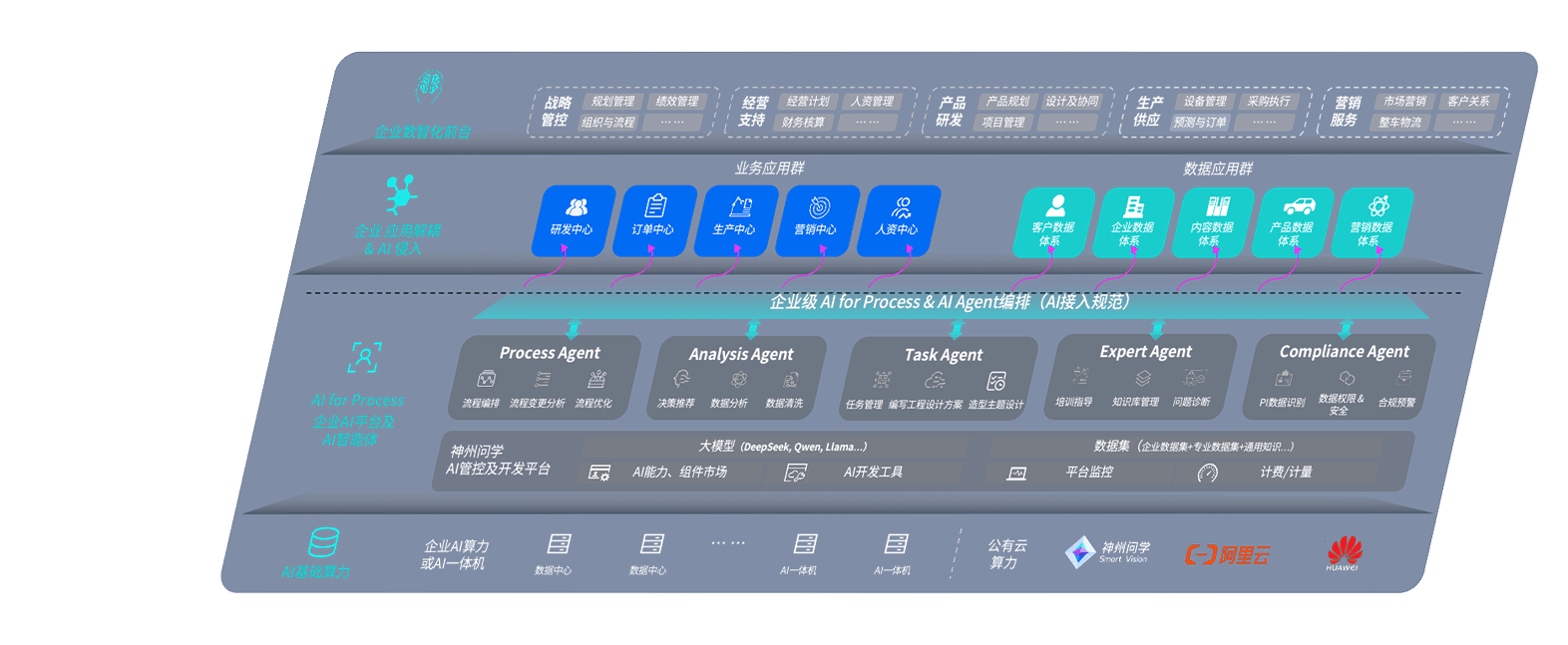 端到端的一站式AI工作空间深度融合了从企业战略规划到日常经营的全流程业务板块,,,,定向解决车企内部领域多、、、部门多、、链条长、、、、场景碎片化等难题,,,支持车企快速构建以AI为核心的生产力写作体系,,实现任务执行与AI能力的无缝集成与交互